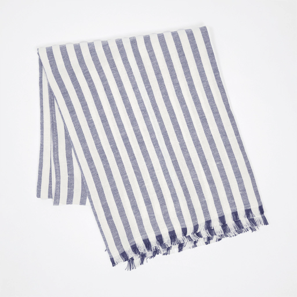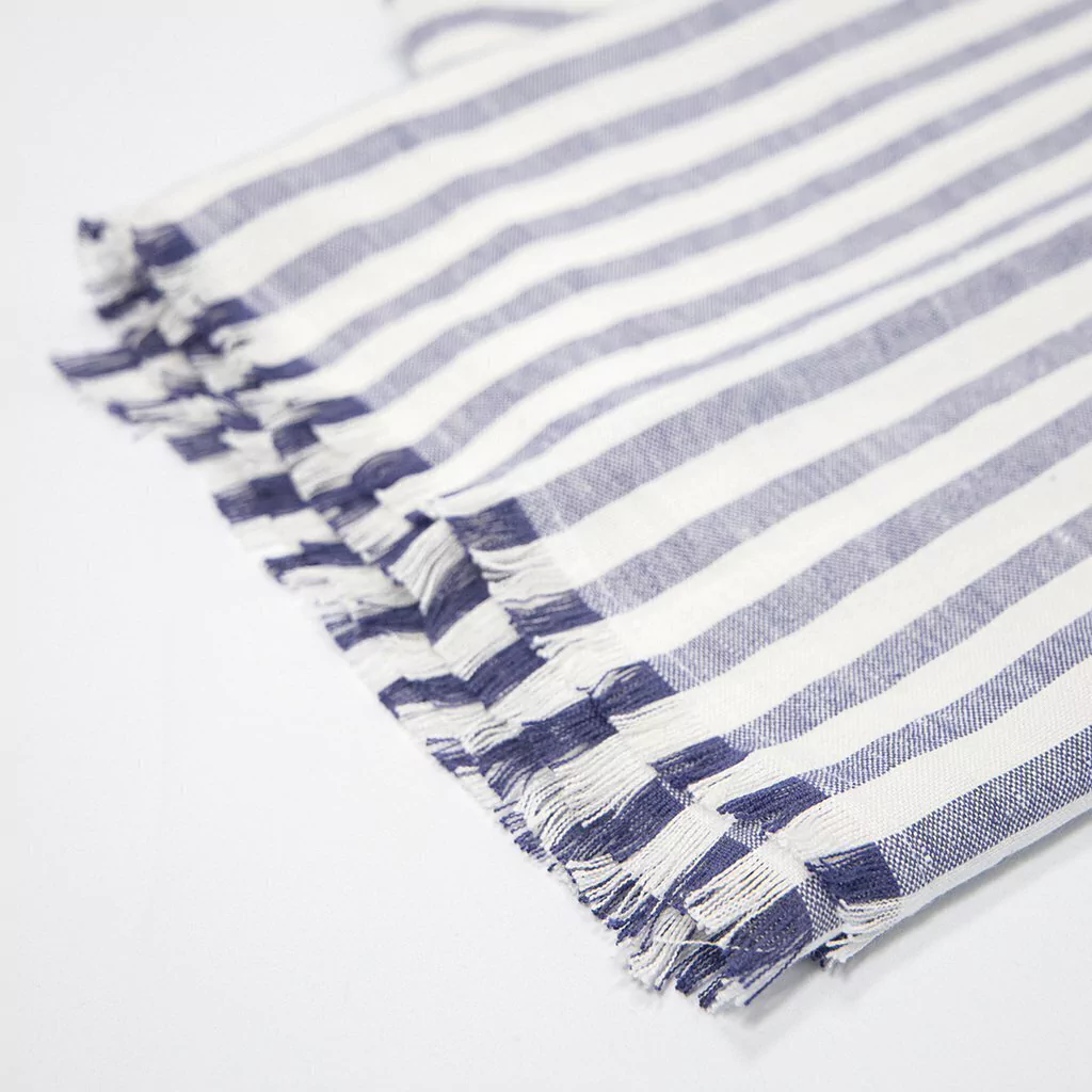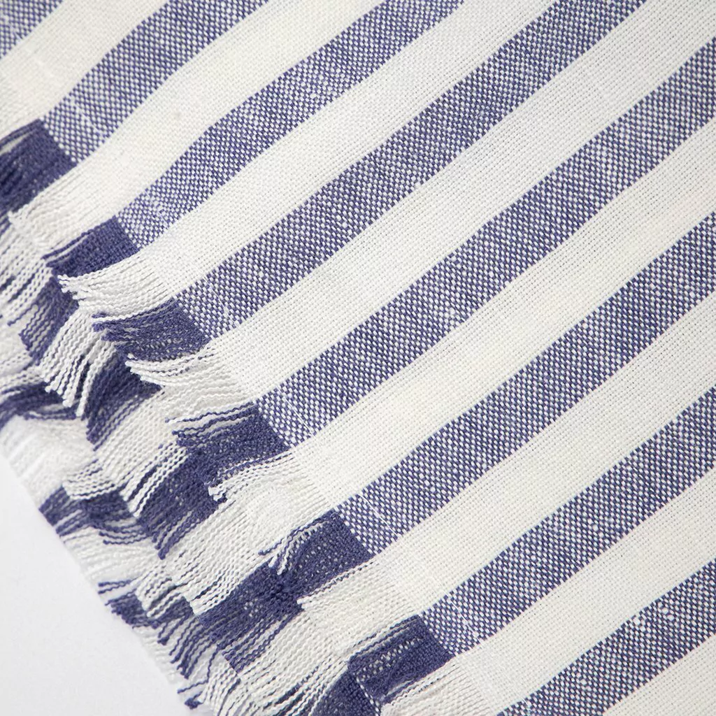 Lona de puro lino (100% lino) con rayas azules, confeccionada en nuestro lino Lines Med Blue.