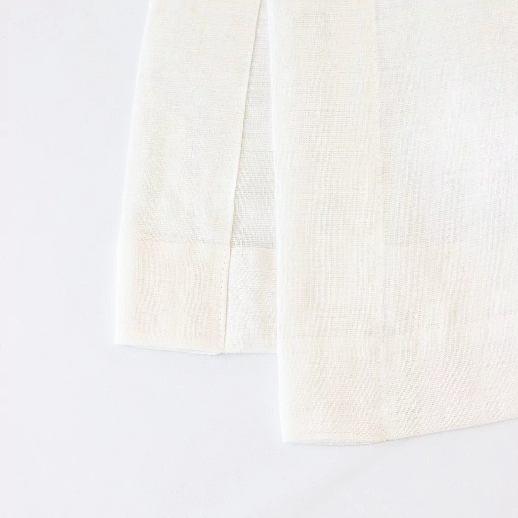 Mantel liso hecho con nuestro lino Merlin Oyster (Off White). Terminación con dobladillo de 5 cm.